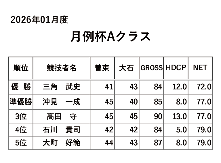 | 18ホールストロークプレーアンダーハンディキャップ |