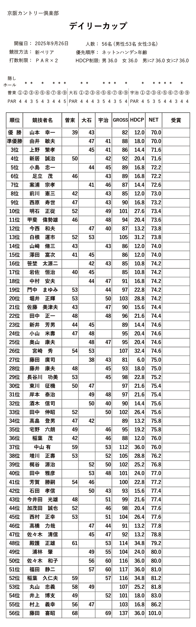 | 9/29(金) | デイリーカップ | PDF | JPG1 , JPG2 |