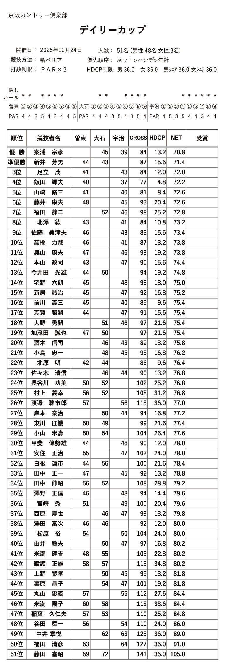 | 10/24(金) | デイリーカップ | PDF | JPG |