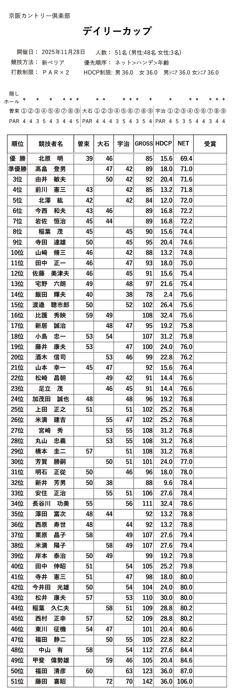 | 11/28(金) | デイリーカップ | PDF | JPG |