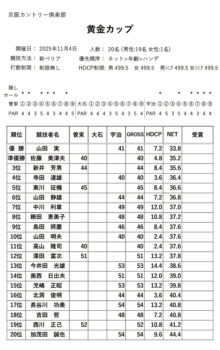 | 11/15(火) | 黄金カップ | PDF | JPG |